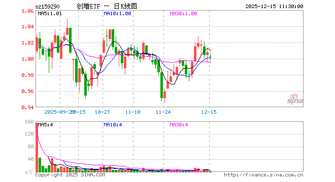 12月15日,截止午间收盘,创业板综指增强ETF东财(159290)跌0.60%,报1.002元,成交额41.30万元。创业板综指增强ETF东财(159290)重仓股方面,宁德时代截止午盘跌1.47%,中际旭创跌0.53%,新易盛涨0.27%,迈瑞医疗跌0.90%,胜宏科技跌4.04%,阳光电源跌3.41%,汇川技术跌2.33%,蓝思科技跌2.90%,亿纬锂能跌2.85%,天孚通信跌1.75%。